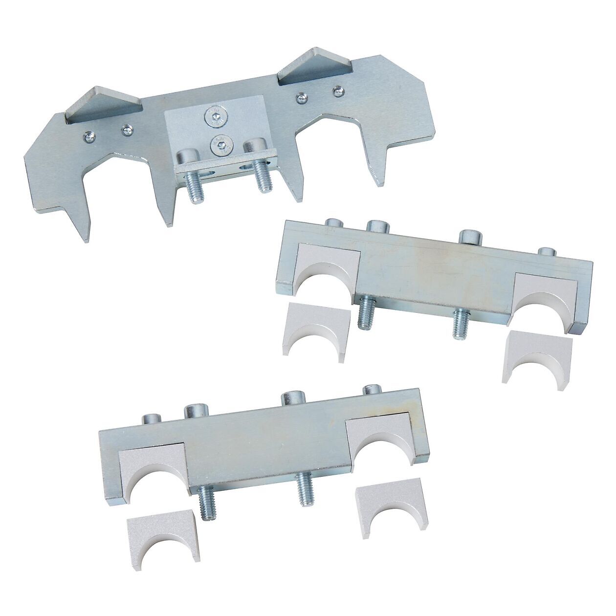 Het nieuwe ontwerp van het nokkenasinstelgereedschap zorgt voor meer stabiliteit en een eenvoudigere bediening. De set bevat 2 adapters die gecentreerd op de nokkenasbrug worden geplaatst, zodat de juiste positie van de nokkenassensorwielen kan worden bepaald.
